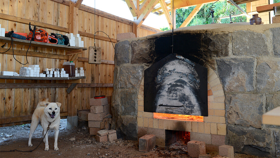 『炎向窯』の名前を決める時は、夫婦二人で何日も考えました。『ひなた』という言葉の響きが好きで、『窯元は炎に向かっていかんとね!』と言うことで、この名前に決まりました。ひなた村の一日は、ワンコ達の散歩で始まります。それも早朝ではなく、NHKの朝ドラを見てから、ゆっくりと1時間程かけて…猫達・鳥達・植物達の世話をして…の~んびりしたものです。そして、お昼寝は欠かせません(15分位のお昼寝は、体にも良いそうです)。ゆったりと流れる時間の中から、炎向窯の品々は生まれてきます。一日の終わりは、これまたワンコ達の散歩です。これが終わると、やっと自分の時間です。落着いてロクロの前に座れます。時間はゆっくりと流れるのですが、1日はあっと言う間に過ぎてしまいます。